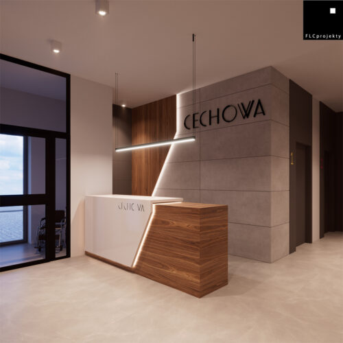 - recepcja – możliwość sterowania dźwiękiem w korytarzach, kodowanie kart dostępu, wideo-domofon, telewizor, miejsce na xero