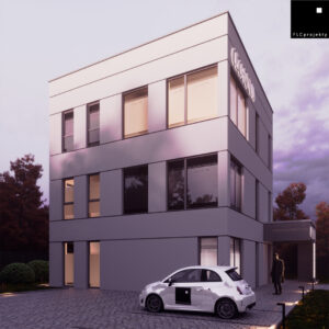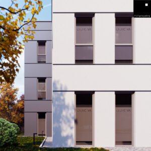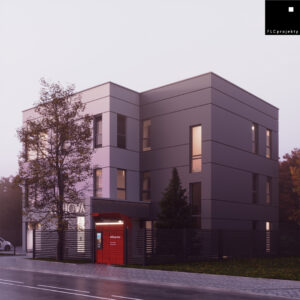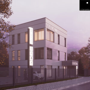 Trzy-kondygnacyjny budynek o łącznej powierzchni użytkowej ok. 370m2 zaprojektowany w nowoczesnym stylu.