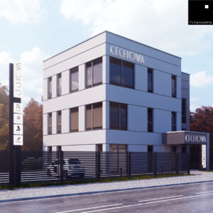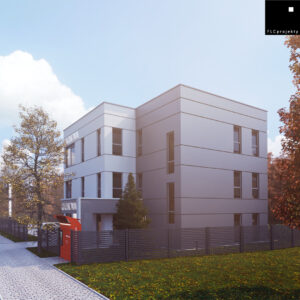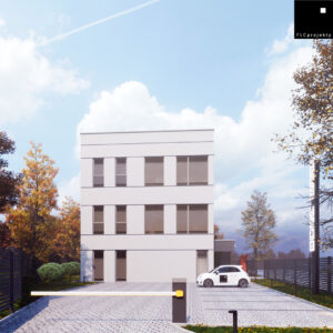 Trzykondygnacyjny budynek usługowy w Krakowie.