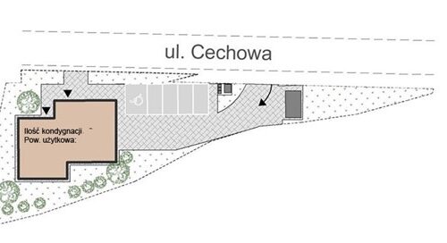 Teren inwestycji jest ogrodzony posiada parking na 6 miejsc postojowe, w tym jedno dla inwalidów.